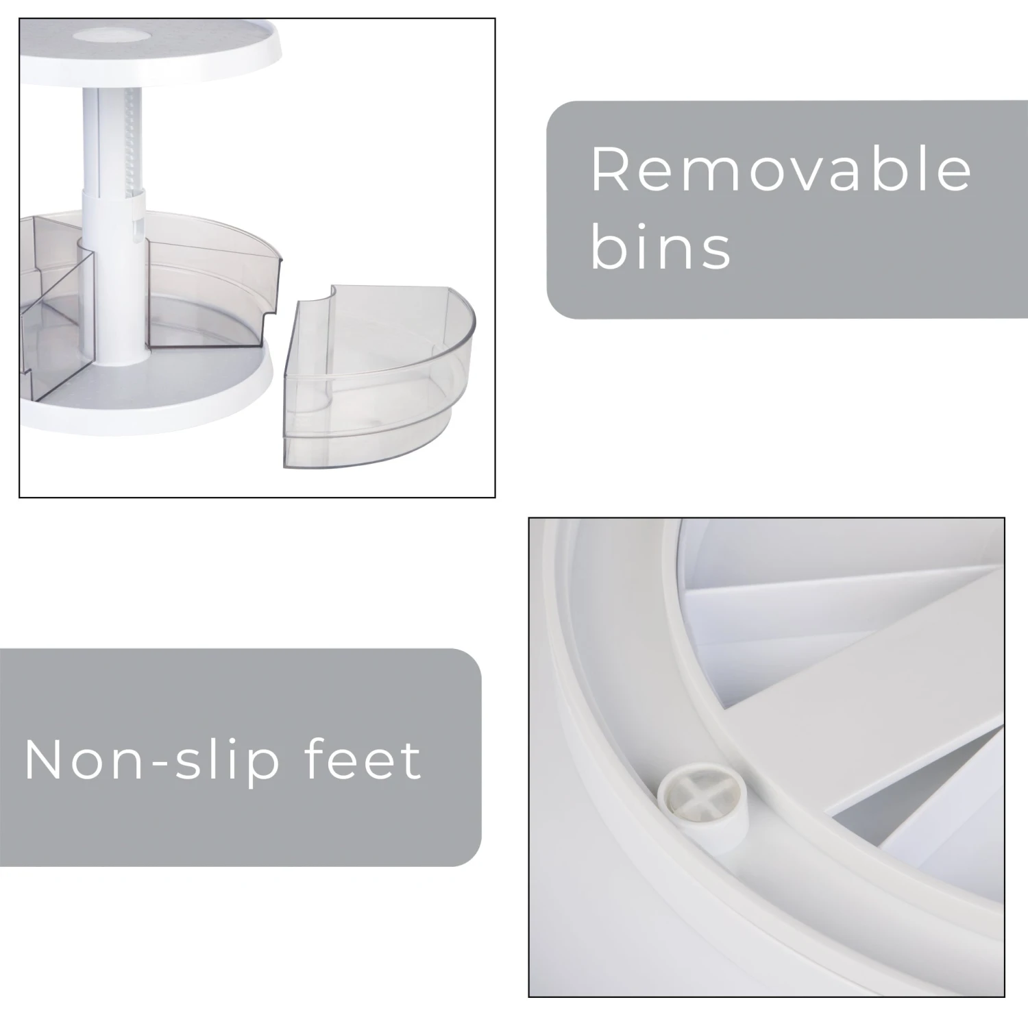 2-TIER LAZY SUSAN –Â Allows you to quickly see and easily grab what you need