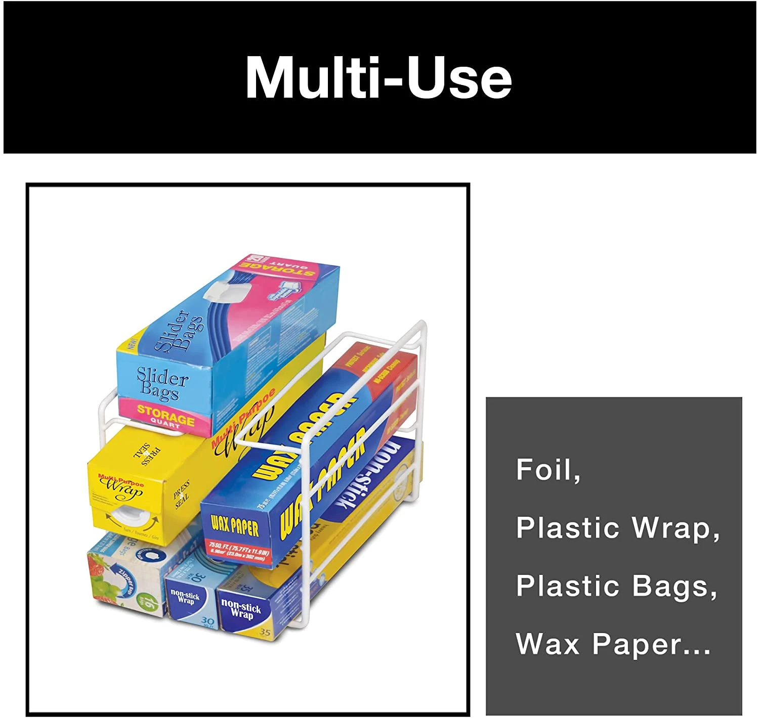3-TIER WRAP ORGANIZER – Have your wraps, foils, bags and long box kitchen items stored in one place