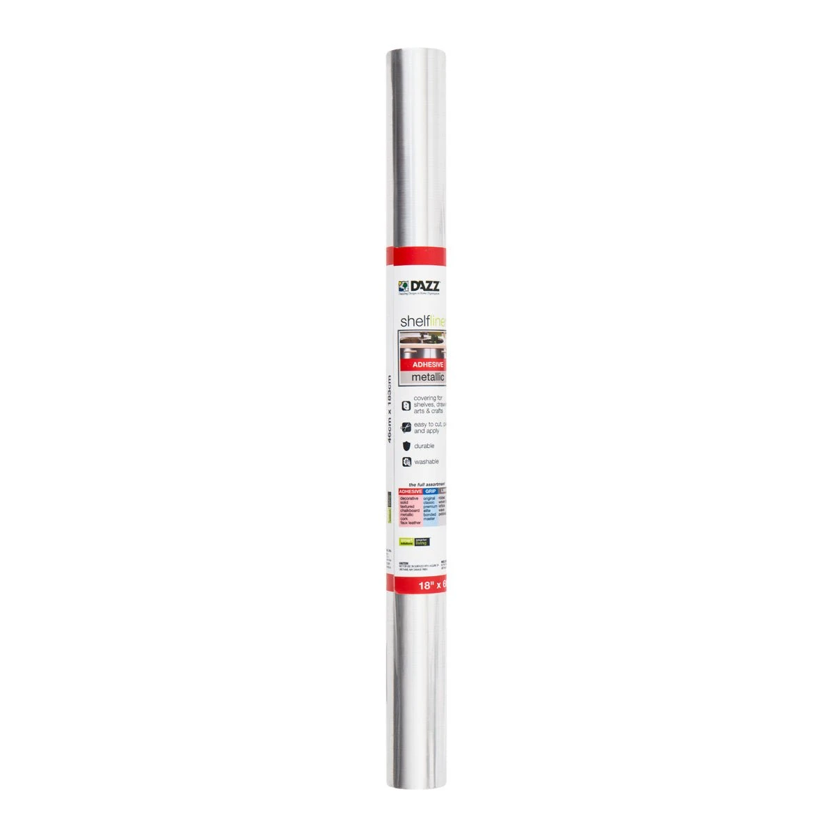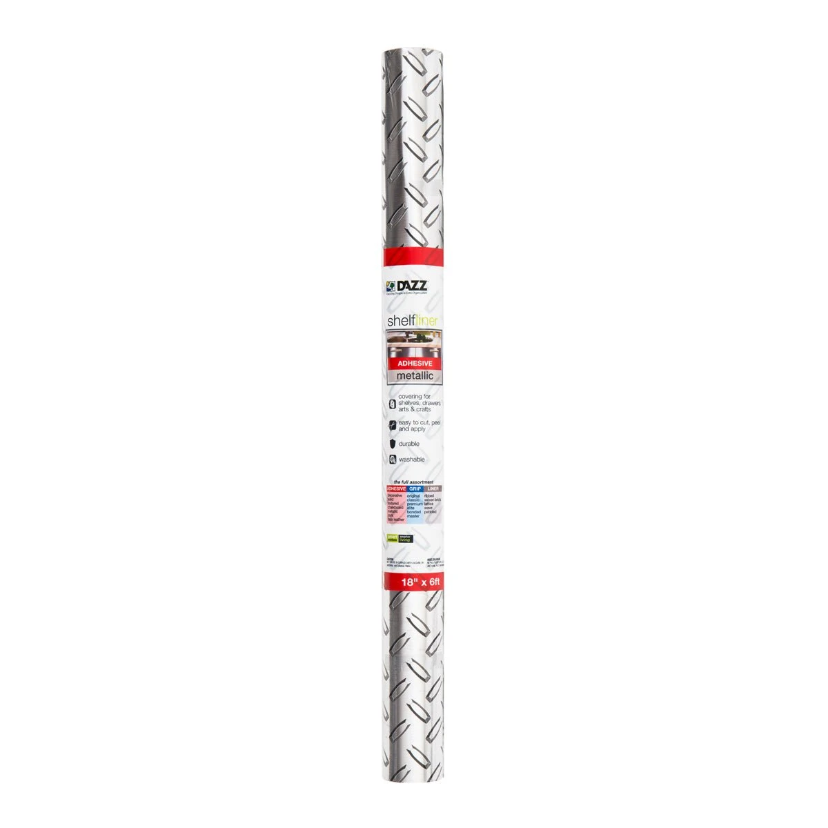 Includes Metallic Adhesive Shelf Liner.