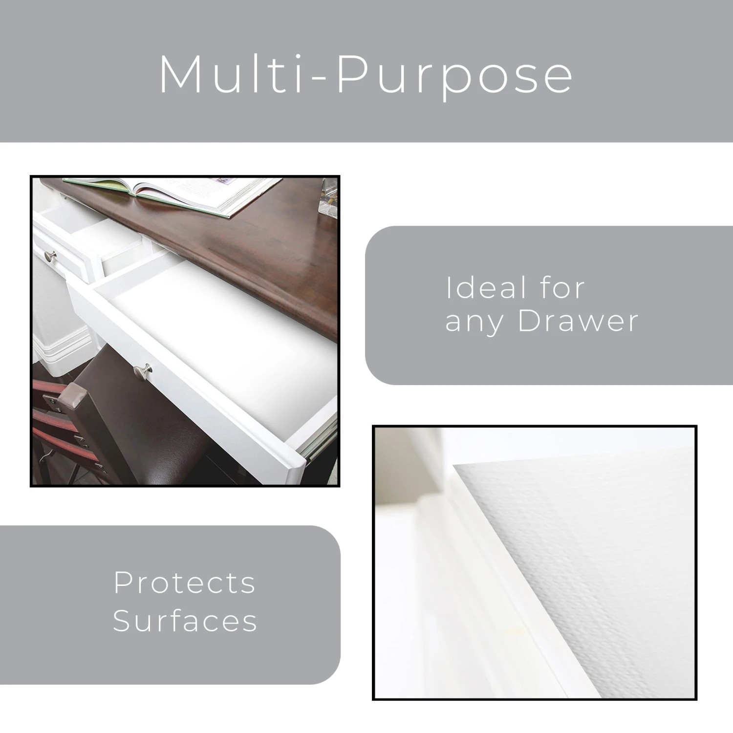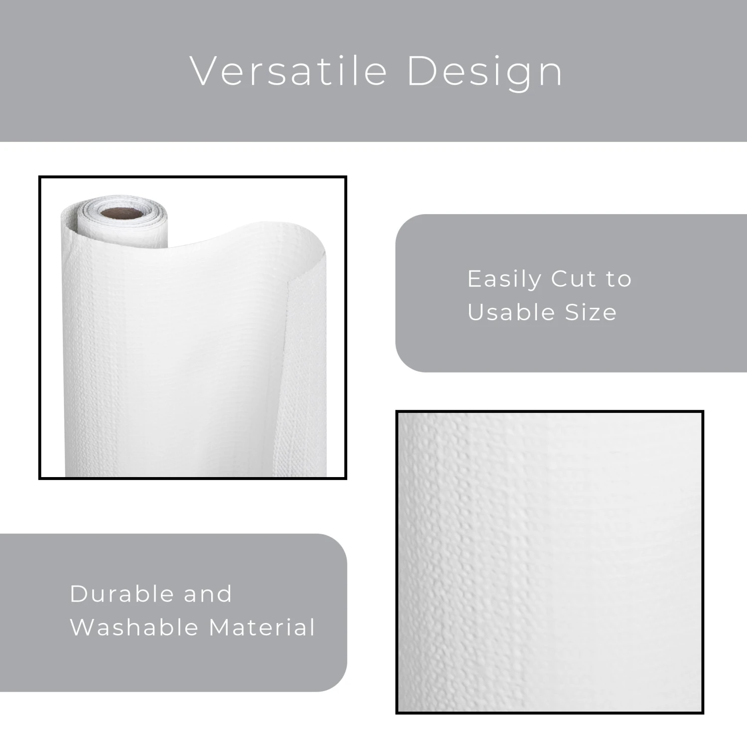 FEATURES – Protects Shelves, Drawers, and Flat Surfaces from everyday wear and tear. Wipes Clean – Grips on Contact – Cutable Material – Non Slip Design – Non Paper Layer – Ideal for Shelves, Drawers, and Flat Surfaces