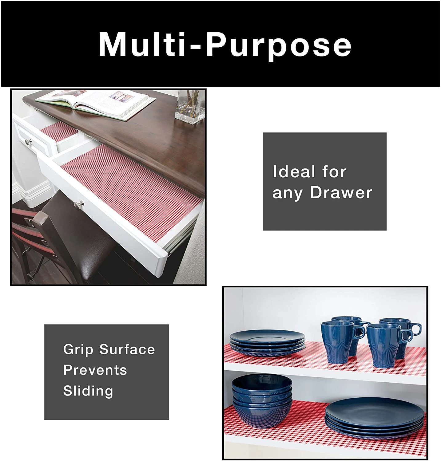 FEATURES – Protects Shelves, Drawers, and Flat Surfaces from everyday wear and tear. Wipes Clean – Grips on Contact – Cutable Material – Non Slip Design – Non Paper Layer – Ideal for Shelves, Drawers, and Flat Surfaces