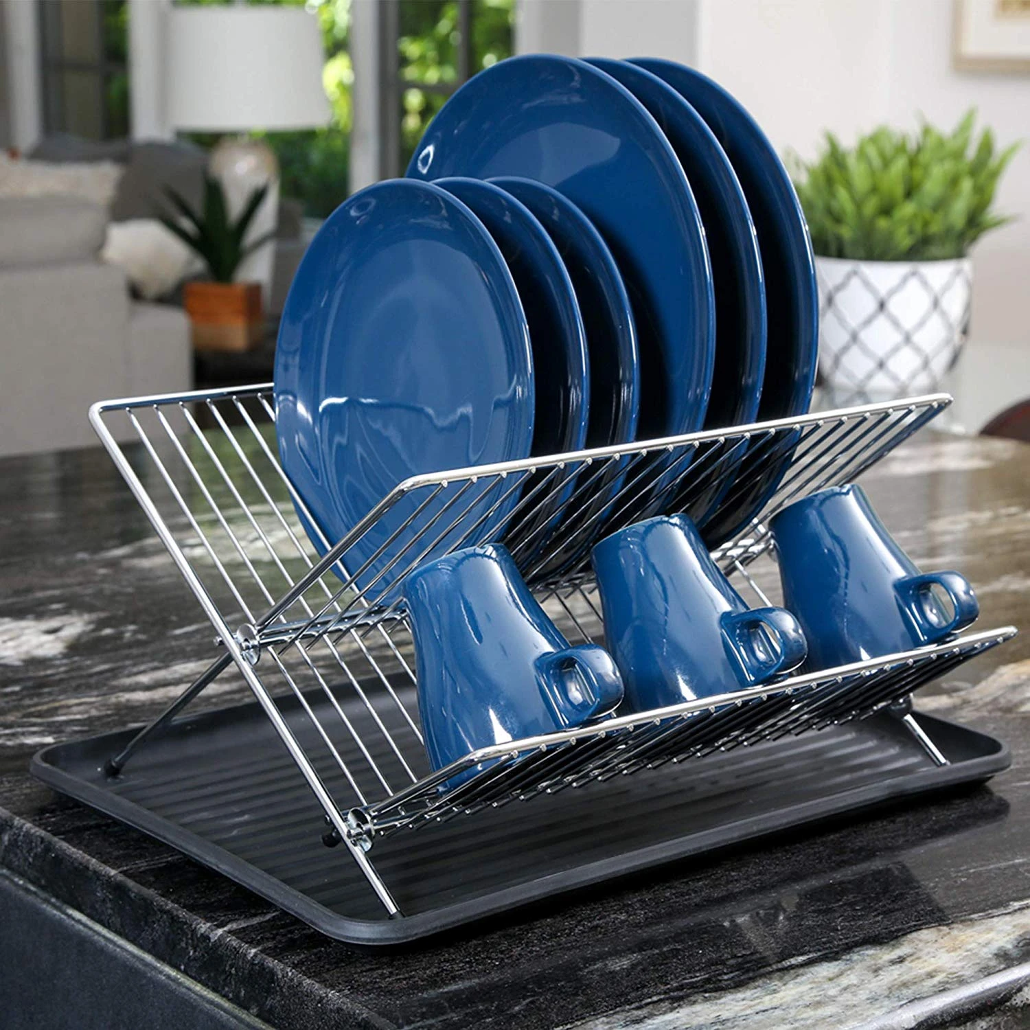 Folding Dish Drainer with Drain Board and Plastic Feet that save your countertops from scratching.