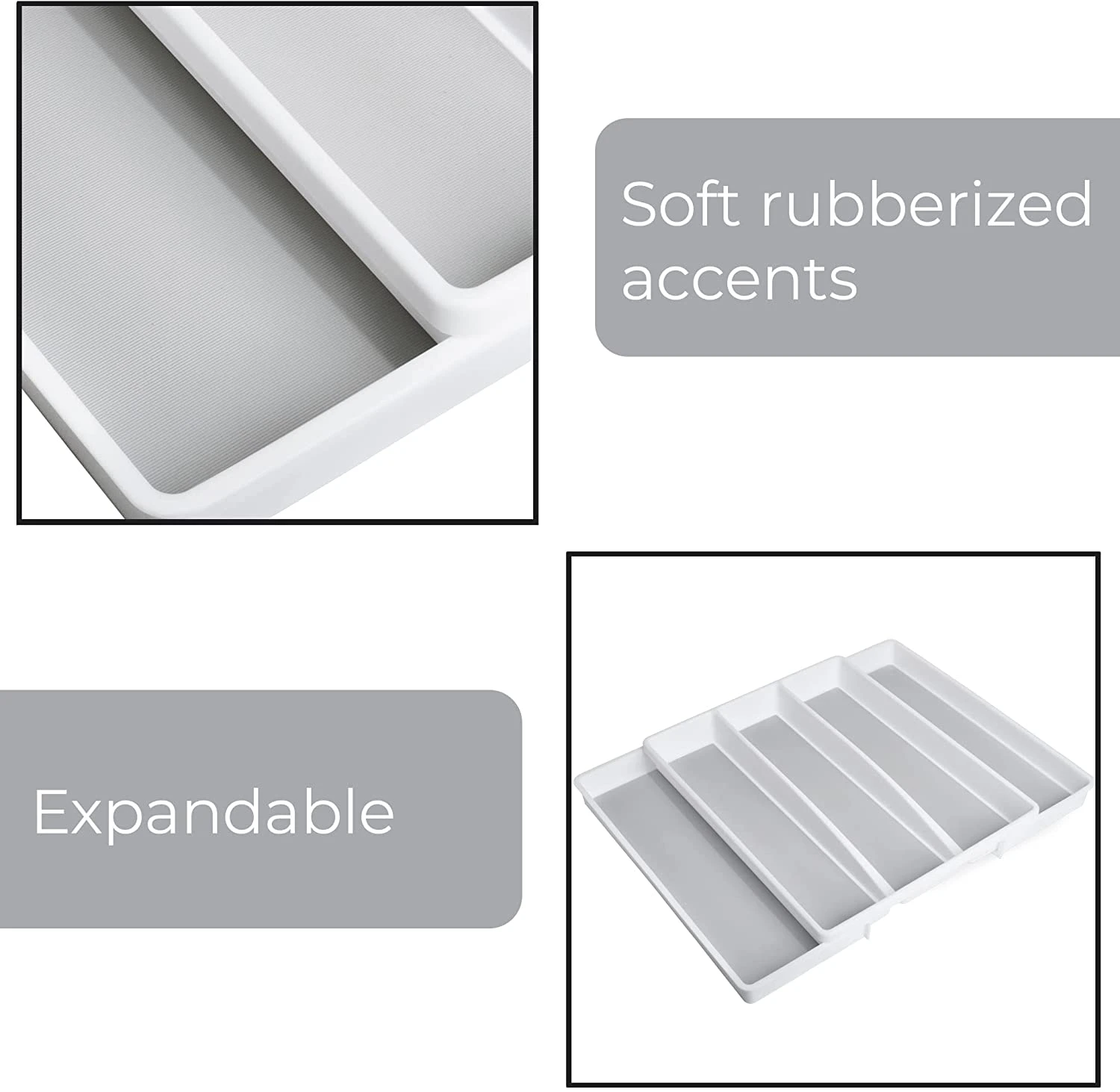 FEATURES – Expands for perfect fit in drawer. Made from high quality BPA free plastic with non-slip inserts