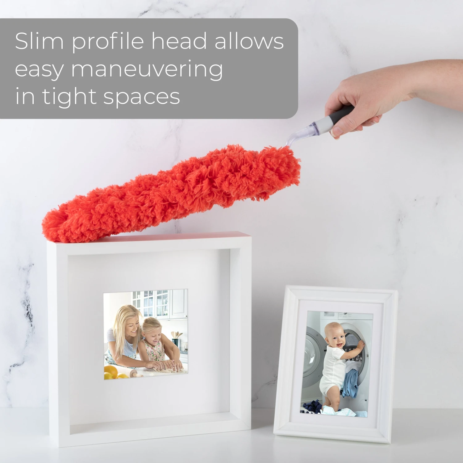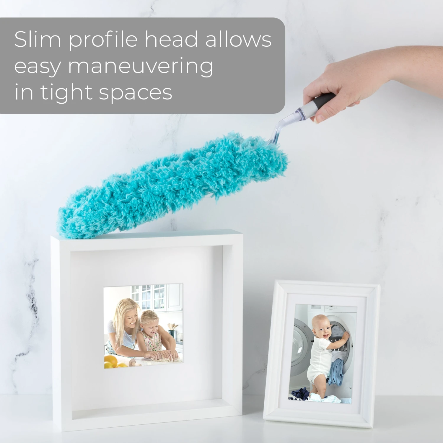 The dusters slim profile allows for easy maneuvering in and around tight spaces.