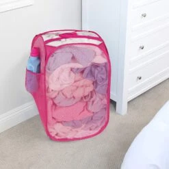 Pop-Up Laundry Hamper With Easy Carry Handles And Side Pocket(Pop Up Laundry Hamper Square 13inch)