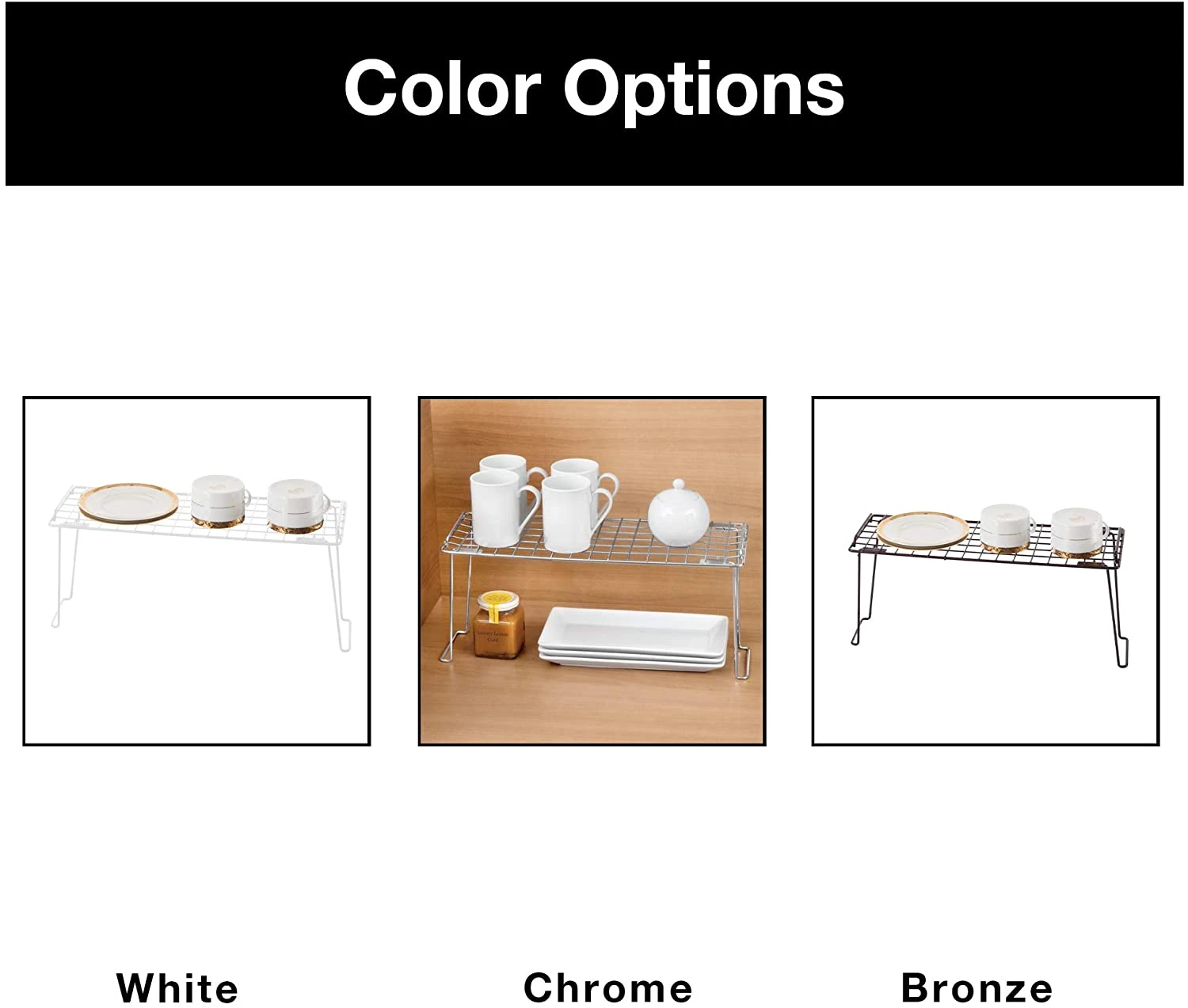 FEATURES – With a stackable, sturdy steel frame that’s ideal for organizing plates, cups, and spices