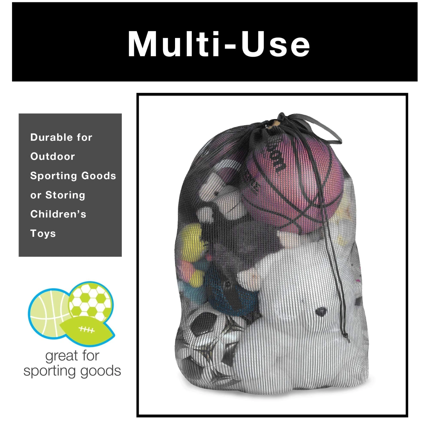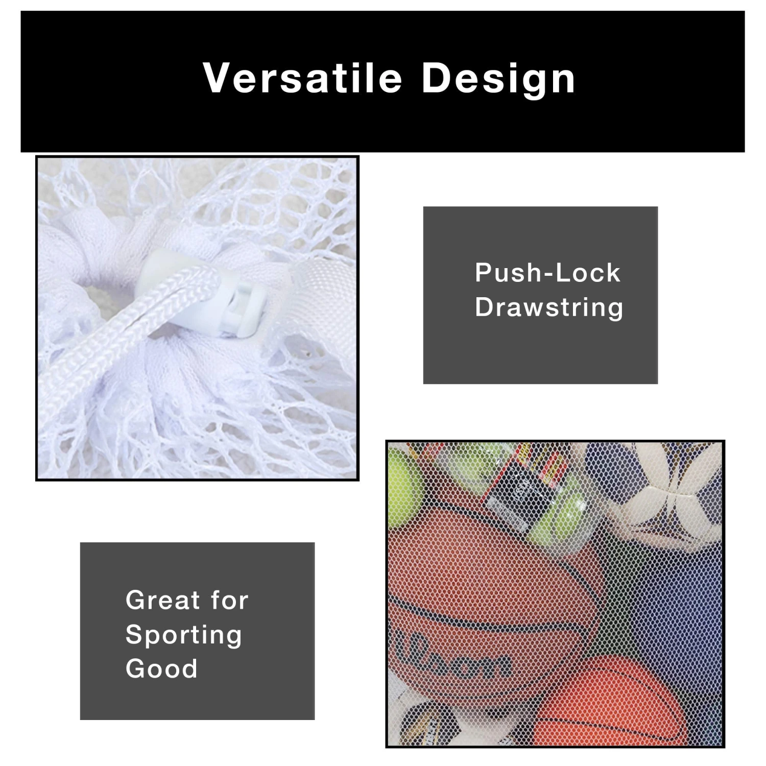 Laundry Bag with Push Lock Drawstring and heavy duty VentilAirâ„¢ mesh material allows for ample storage of almost anything.