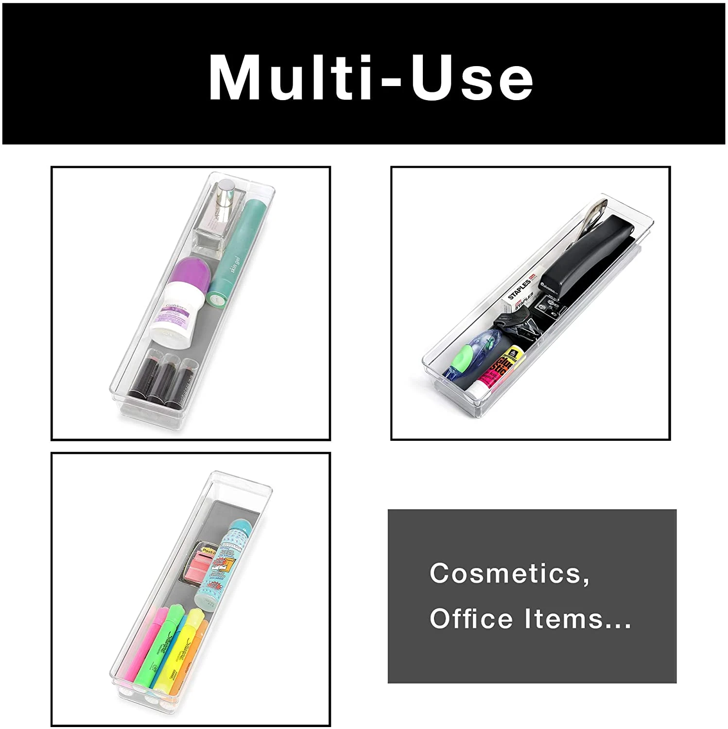 These drawer organizer trays were made for organizing your kitchen drawers and office drawers.