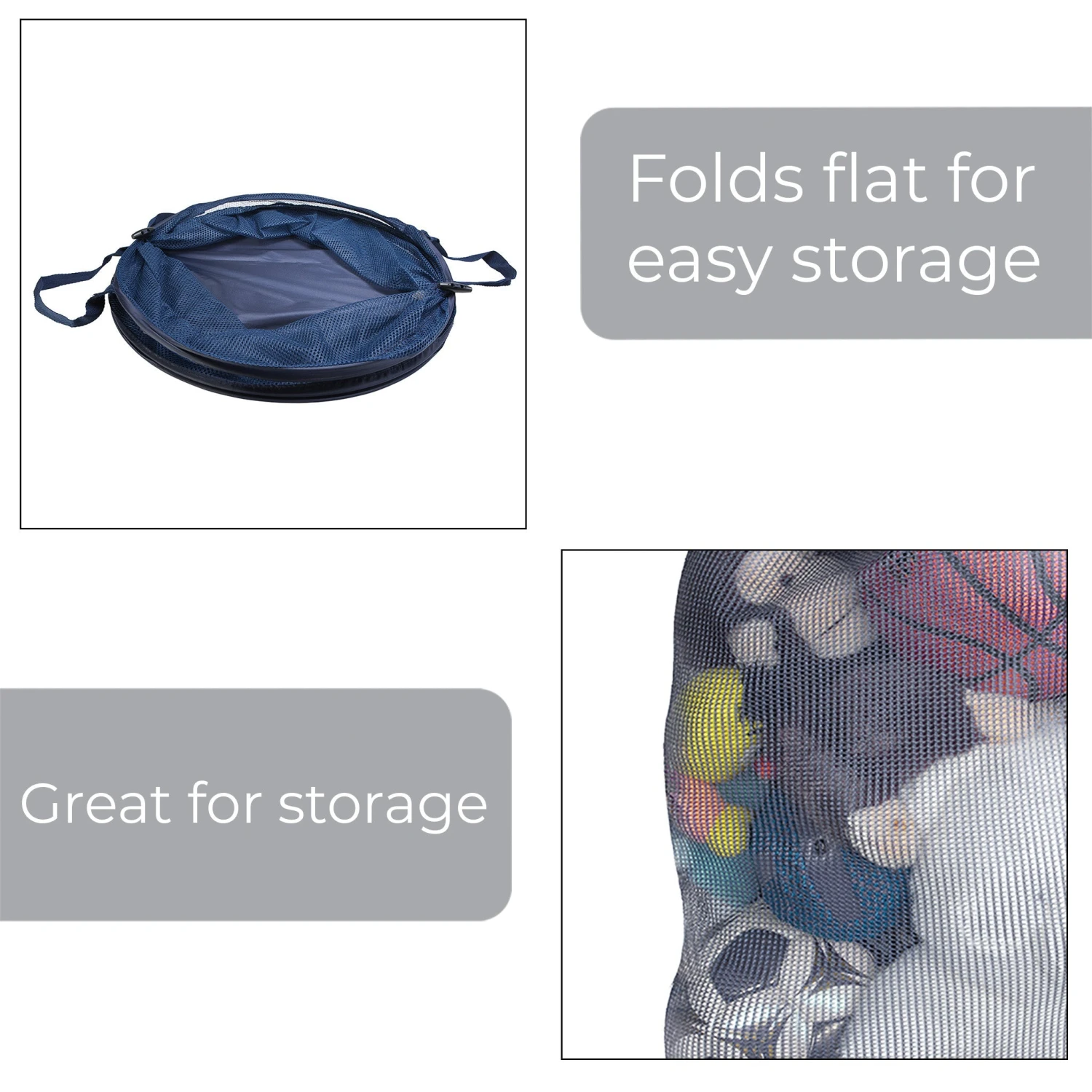 Includes strap handles and collapsible for portability and travel.