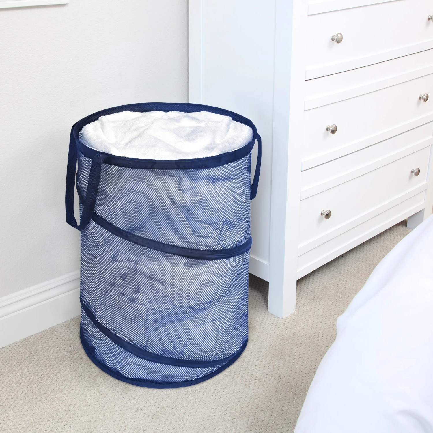 The hamper saves lots of floor space as it stores up to 4 loads of laundry.