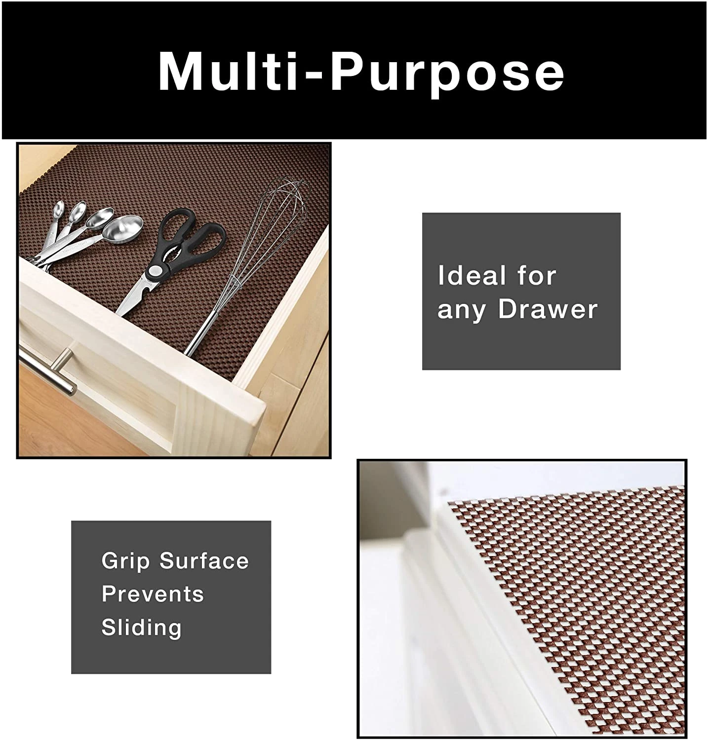 FEATURES – Protects Shelves, Drawers, and Flat Surfaces from everyday wear and tear. Wipes Clean – Grips on Contact – Cutable Material – Non Slip Design – Ideal for Shelves, Drawers, Cupboards, and Flat Surfaces