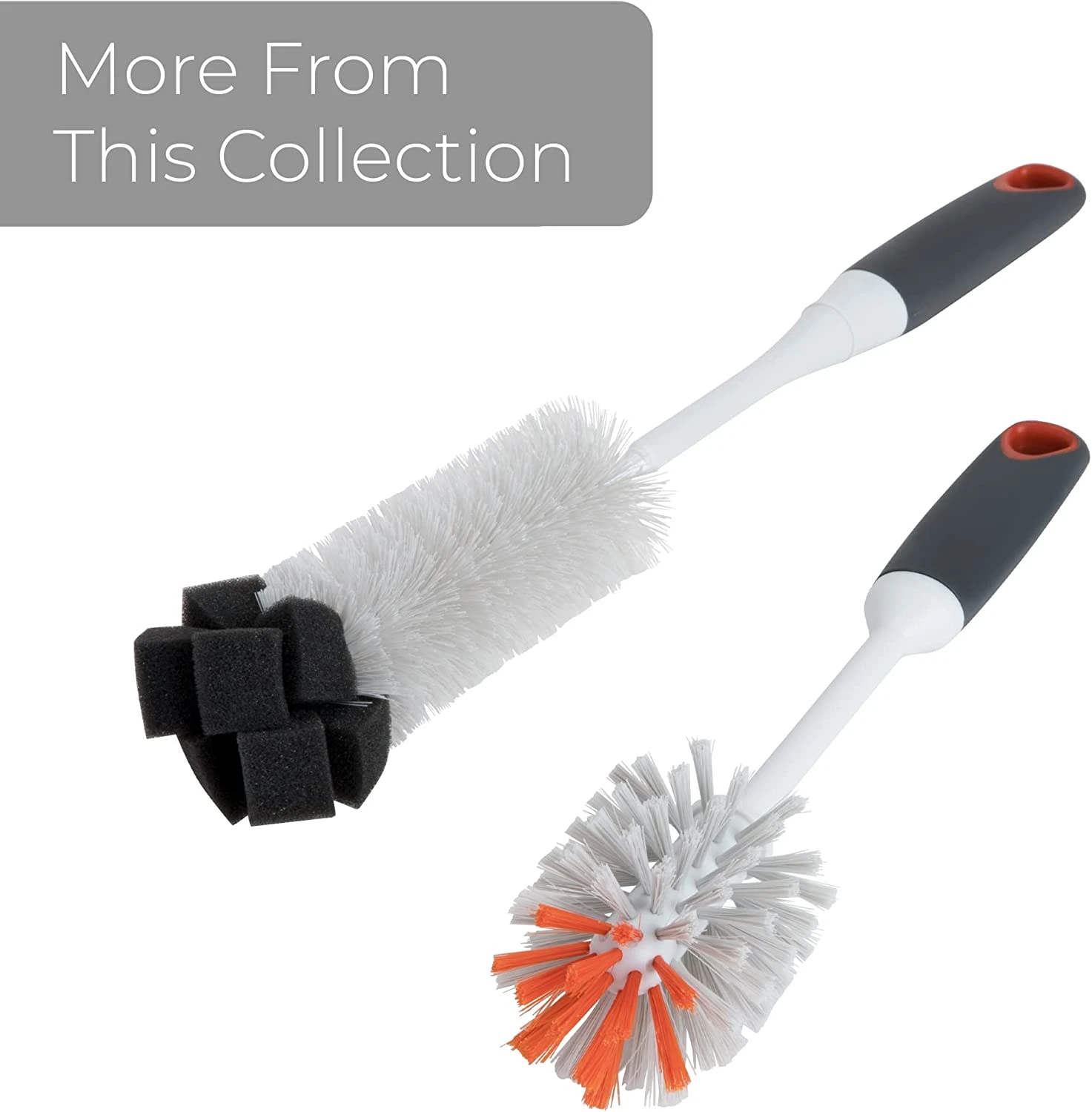 Multi-use bottle brush features non-slip handle to provide a secure grip, even when wet.