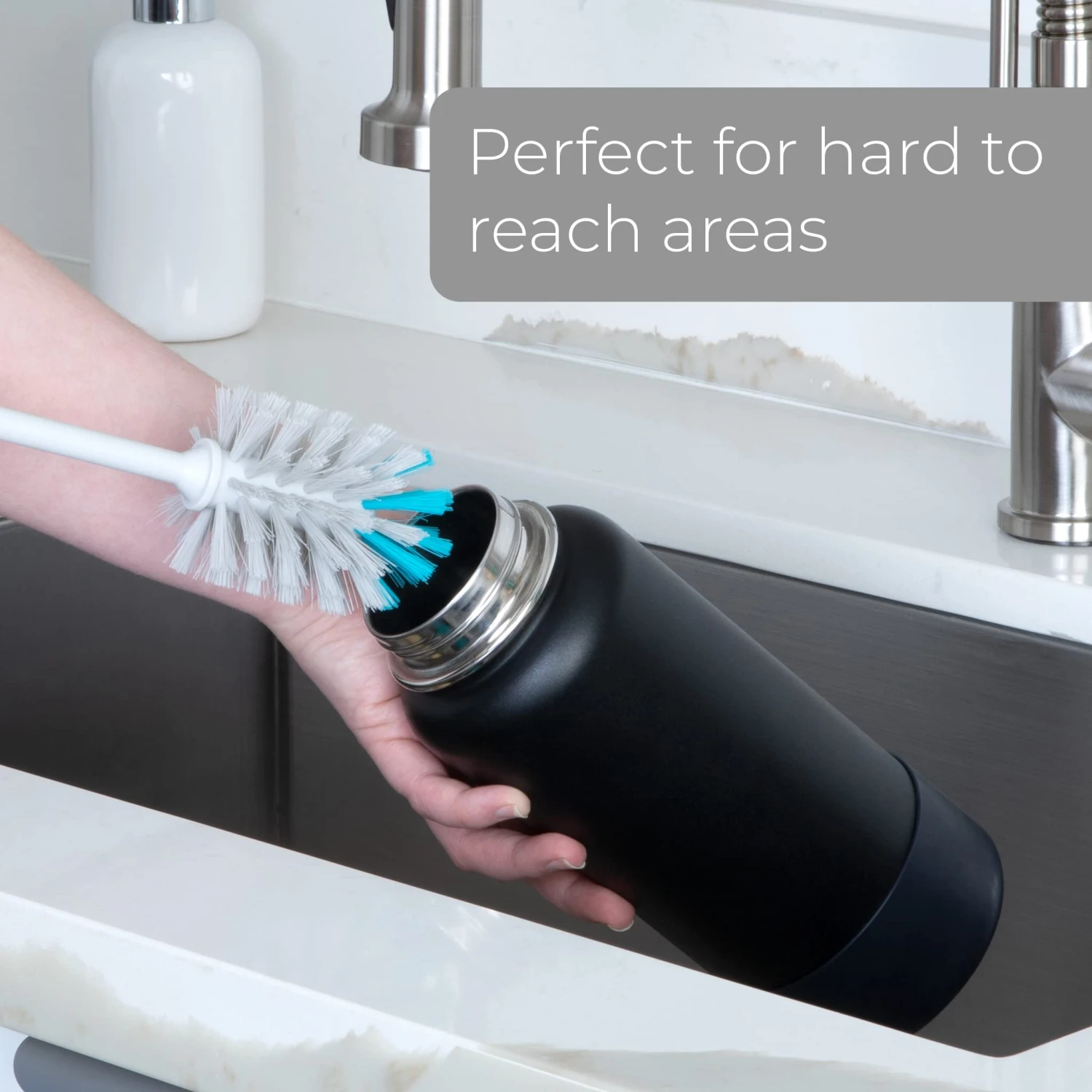 The long neck makes it easy to clean inside a variety of bottles, pitchers, carafes and more.