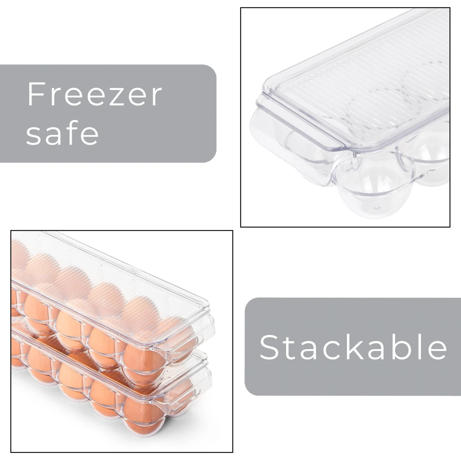 Grade AA – BPA free egg holder is fridge and freezer safe for convenient storage