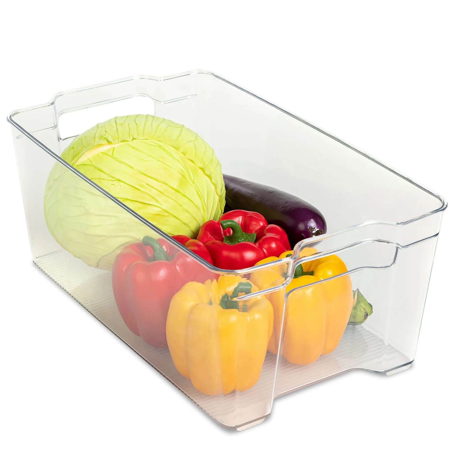 STACKABLE REFRIGERATOR BIN – Doubles your shelf space storage, stacks, & nests neatly w/ other bins